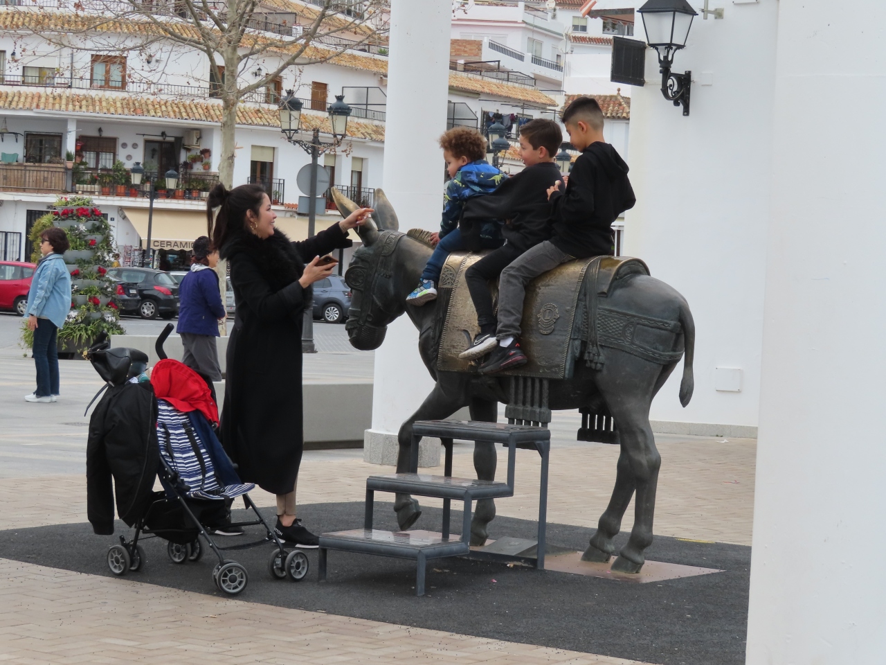 添乗員付きツアーで訪問。駐車場からエレベーターで上がった所から始まる大きな広場。レストラン・土産物店・ホテルやロバタクシー・アーモンド屋台などもそろった、ミハス観光の中心のようです。またがれるロバのモニュメントが子どもたちに大人気でした。