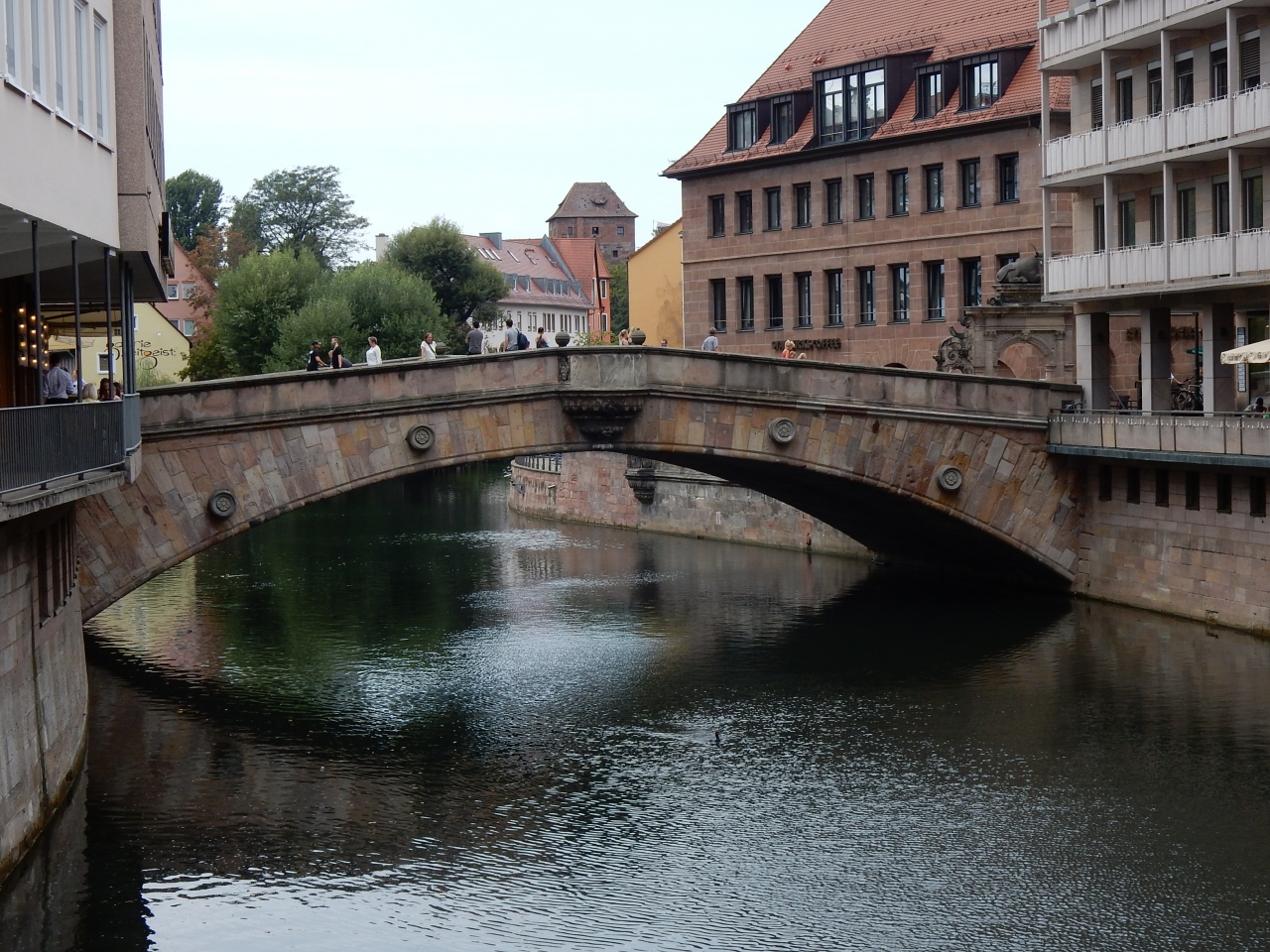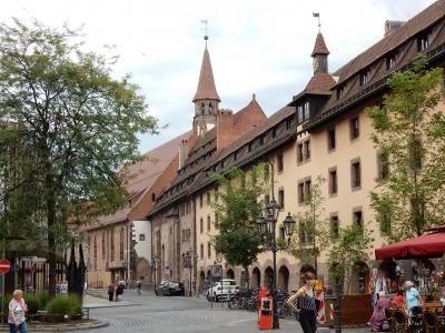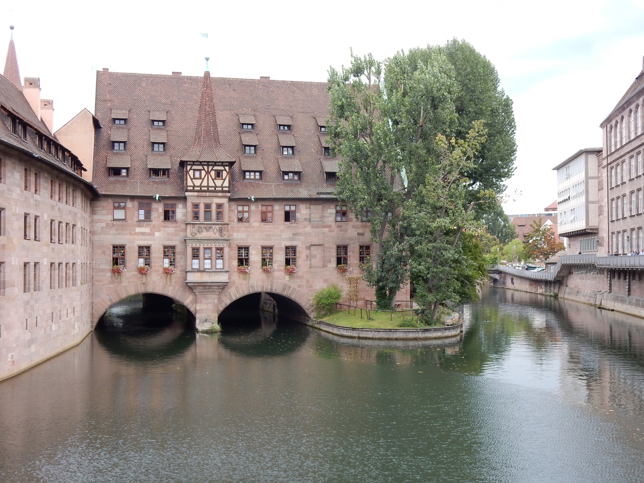 ツアーの観光で、橋の上から外観だけ楽しみました。旧市街を南北に分けるペグニッツ川にかかる「ムゼウム(ミュージアム)橋」から見えます。元は救済院だった建物です。右側は中州に乗っかかって建っているおもしろい構造です。