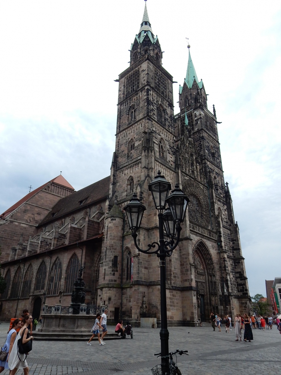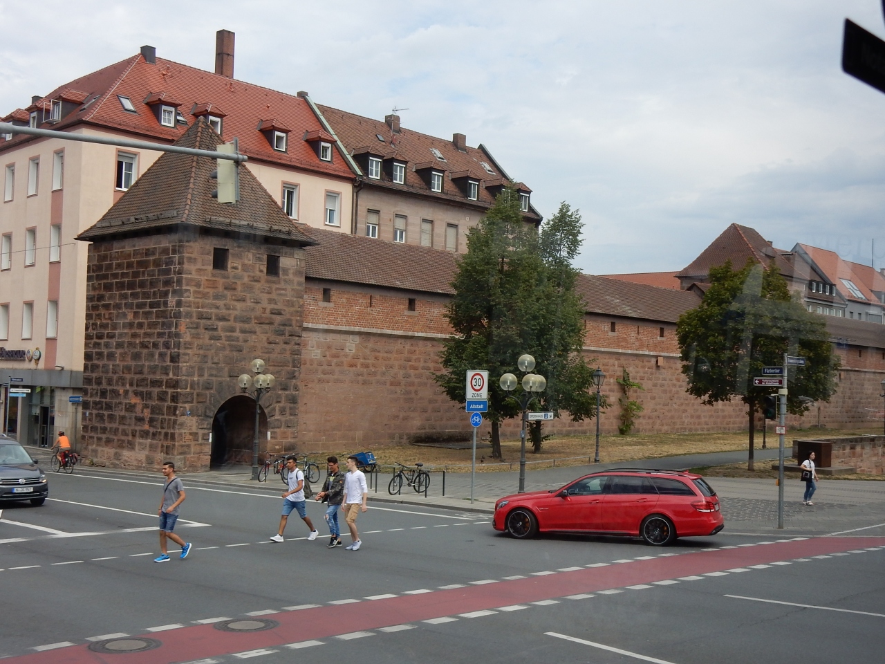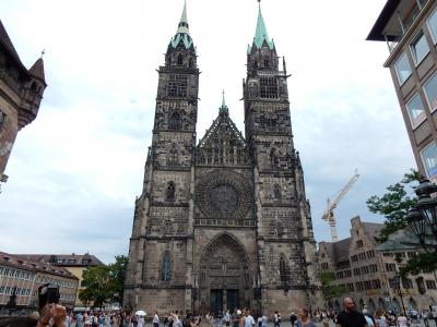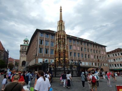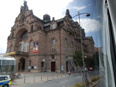 ツアーの観光で。ニュルンベルク旧市街の散策を終えて、観光バスが発車した直後に素晴らしい建物が車窓から見えました。あわてて撮ってみたのがこれです。奇跡的になんとか写っています。ヨーロッパは多くの町で中央駅が歴史的建造物でできていますね。