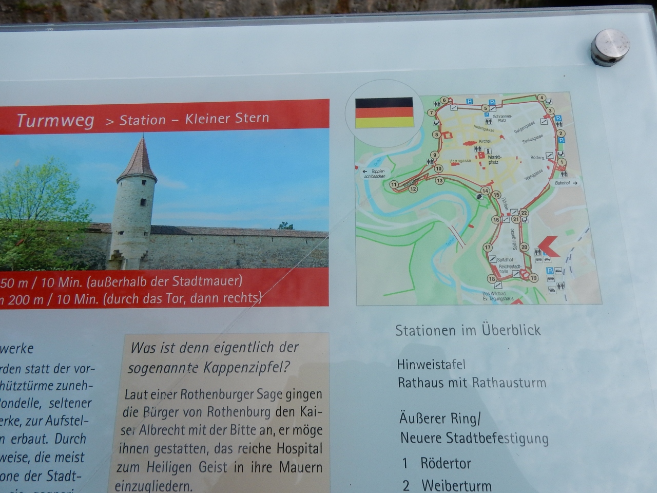 ローテンブルクも二度目で、自由時間たっぷりのツアーだったのでやって来れました。ローテンブルクを外から眺められる穴場的なポイントらしいです。見下ろすのではなく見上げる形ですからもうひとつでした。プレーンライン横の脇道を下った先にあるので帰りは上り。