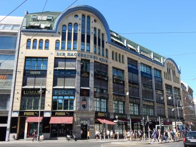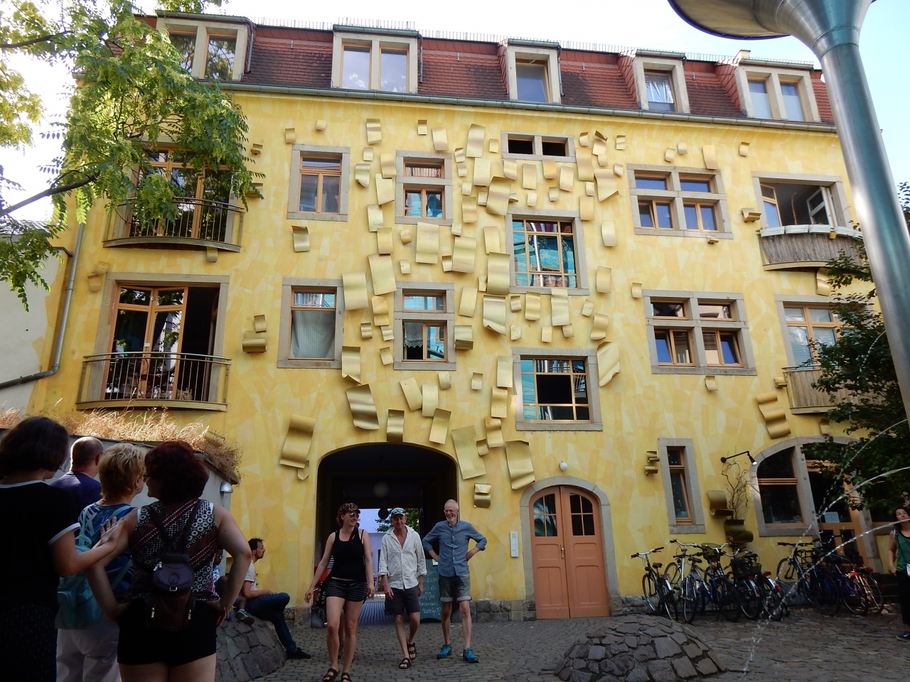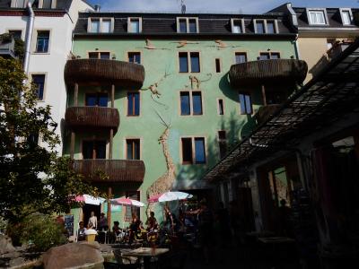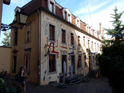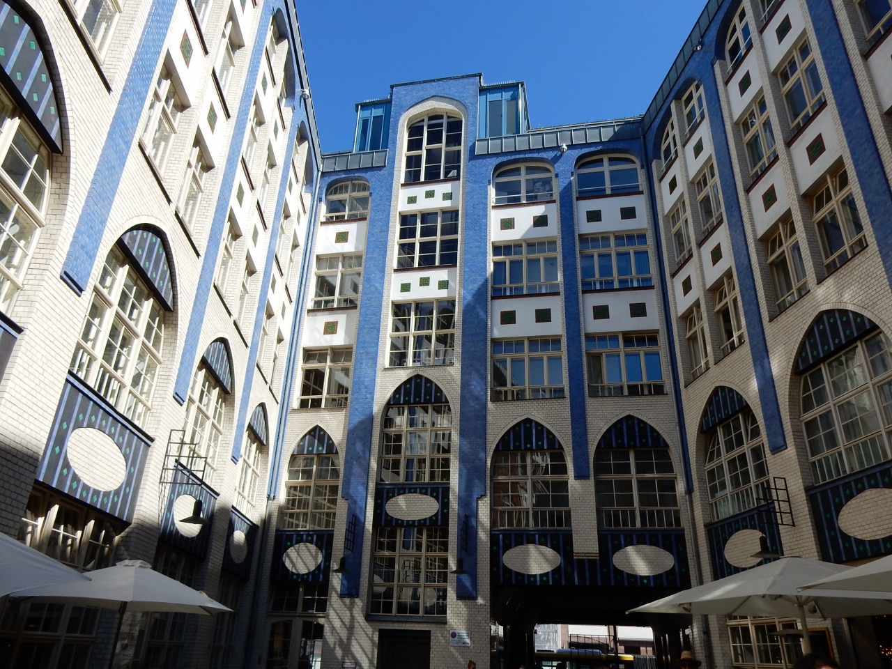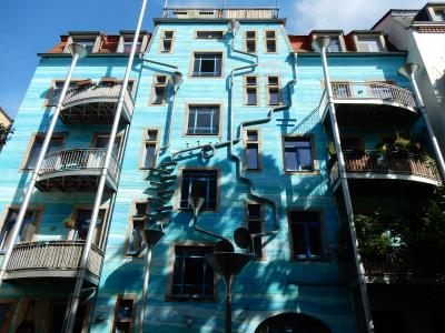 ツアー観光の旧市街観光の後の自由時間で、トラムに乗って行ってきました。狭いエリアに面白いデザインで壁面を飾った中庭がいくつもつながっていて、アートな雰囲気がいっぱいでした。記念にかわいい絵葉書を買いました。