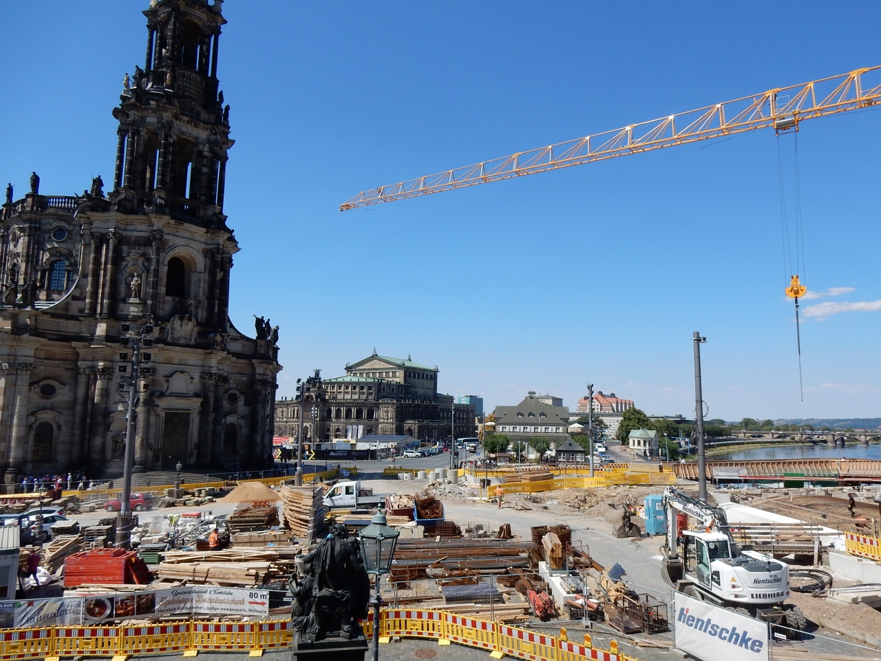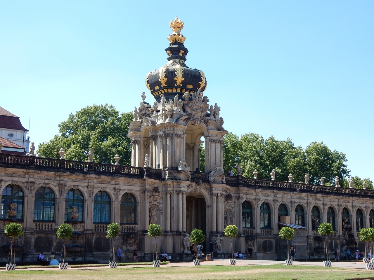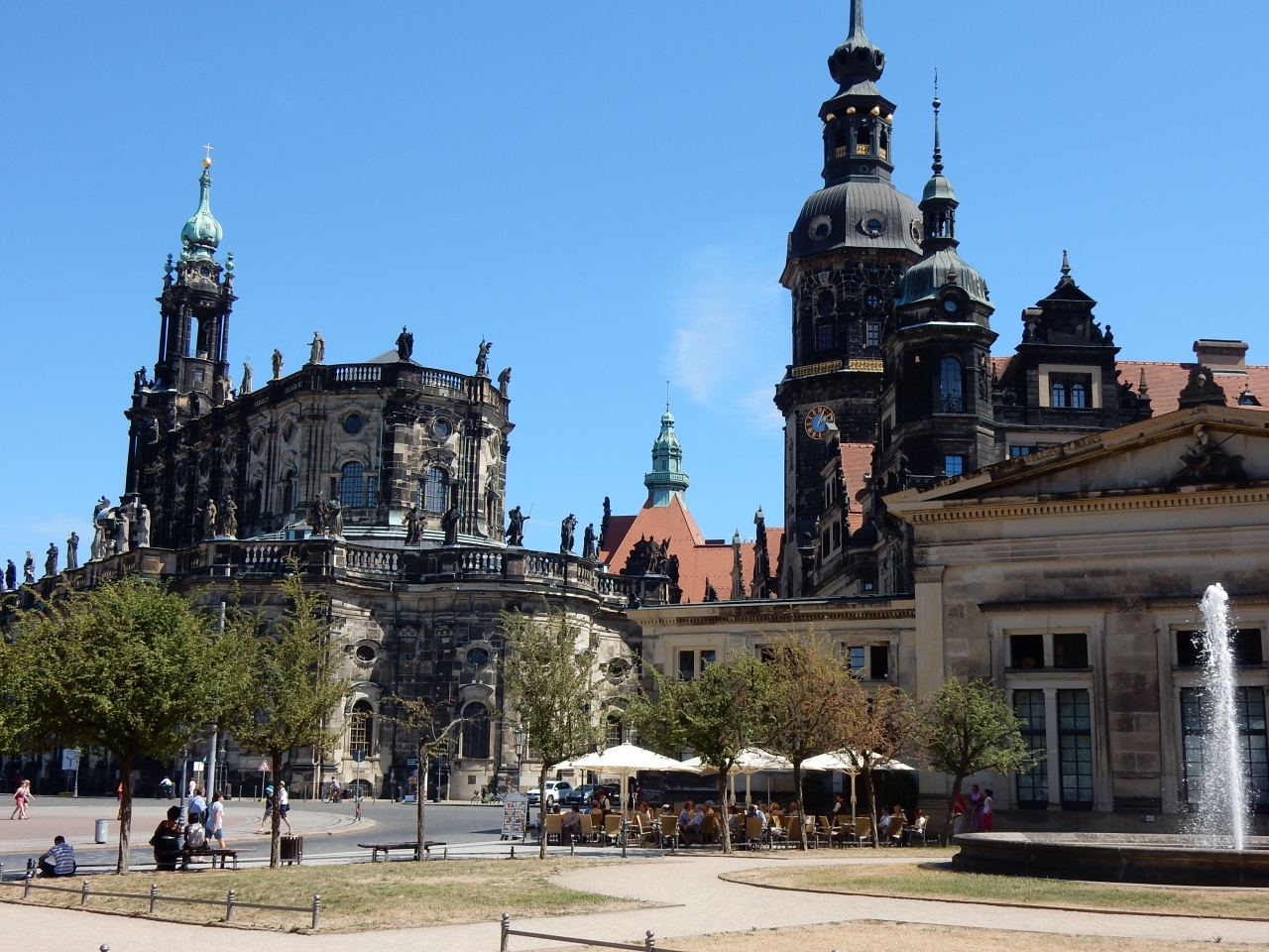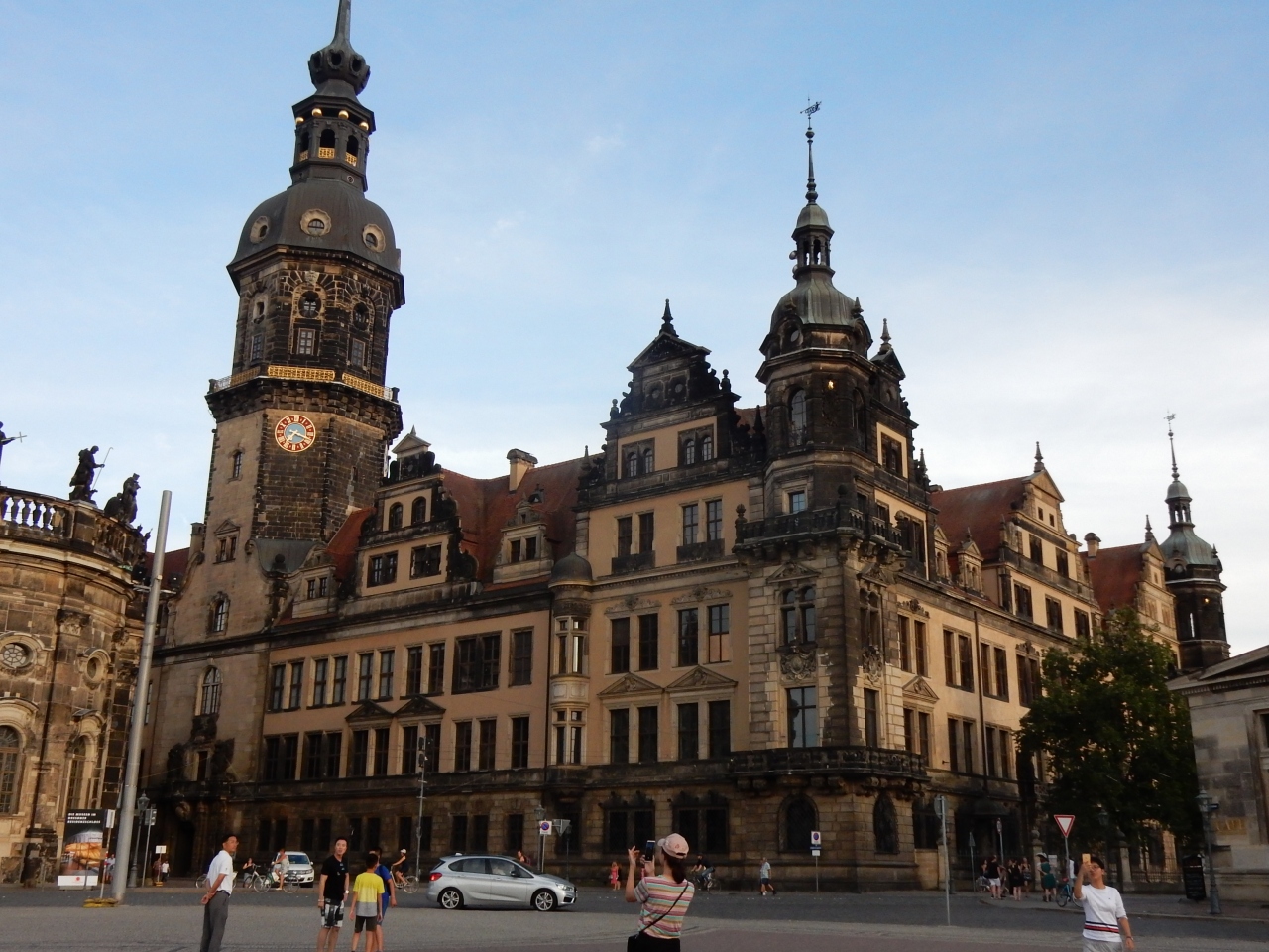 ツアーで観光。ゼンパーオペラ前の広場正面に見える美しい建築。左が「三位一体大聖堂」、右がこの「ドレスデン城(レジデンツ宮殿)」同じ石材を使っているのか、ひと続きの建物に見えます。外観鑑賞だけだったのが残念でした。