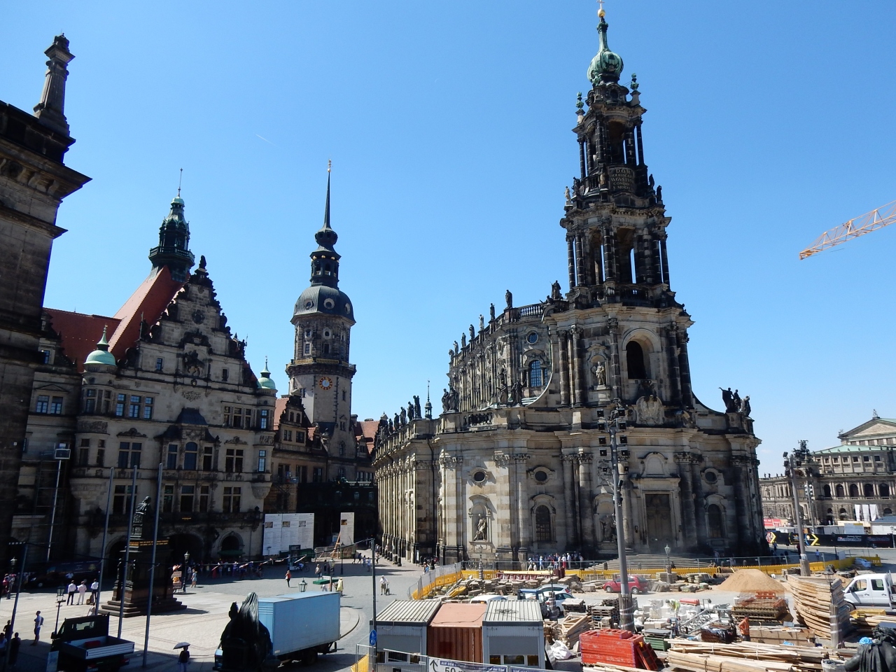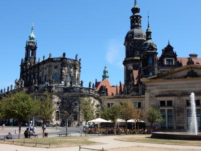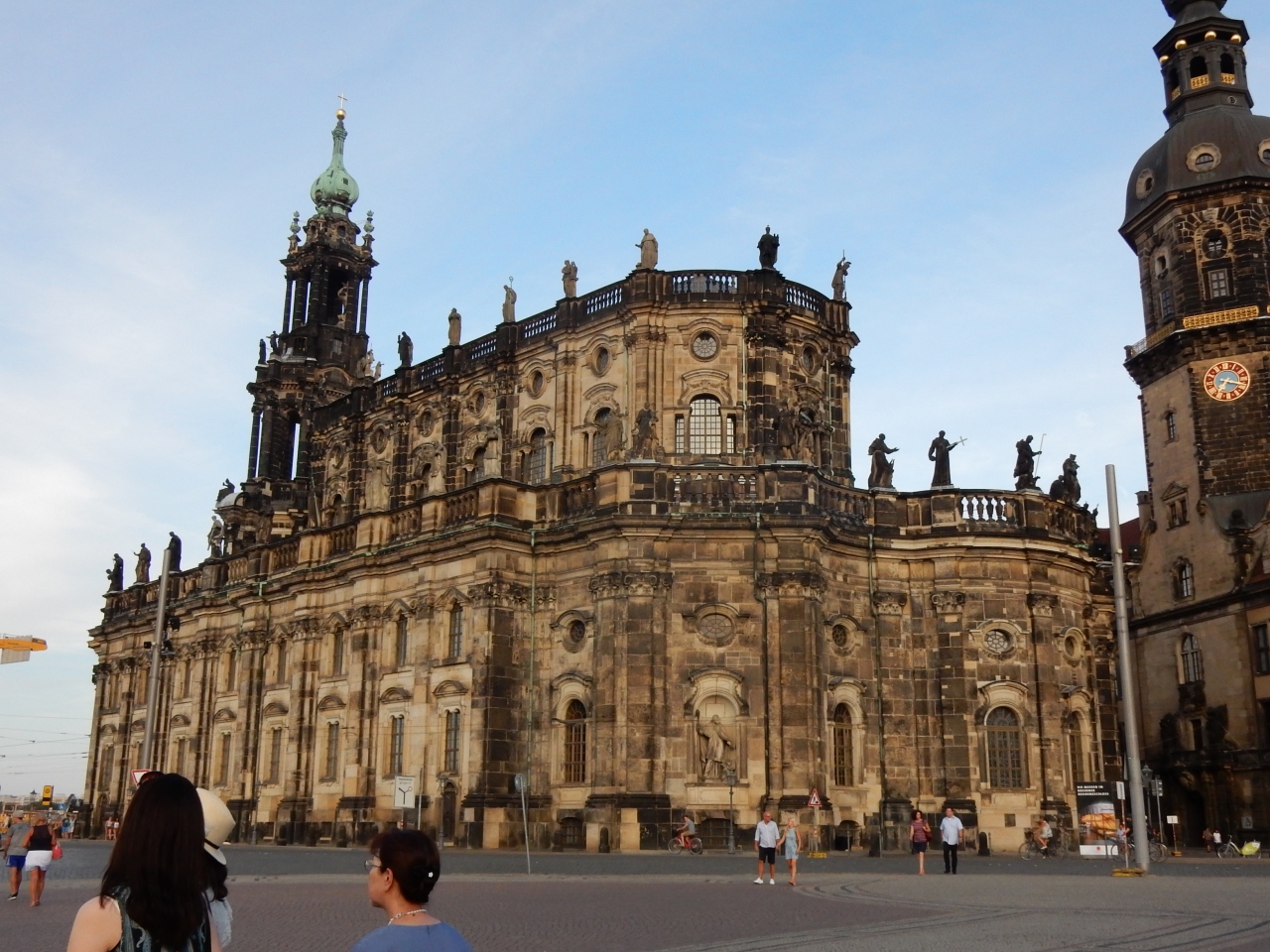 ツアーで観光。ゼンパーオペラ前の広場正面に見える美しい建築。左がこの「三位一体大聖堂」、右が「ドレスデン城(レジデンツ宮殿)」同じ石材を使っているのか、ひと続きの建物に見えます。外観鑑賞だけだったのが残念でした。