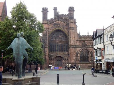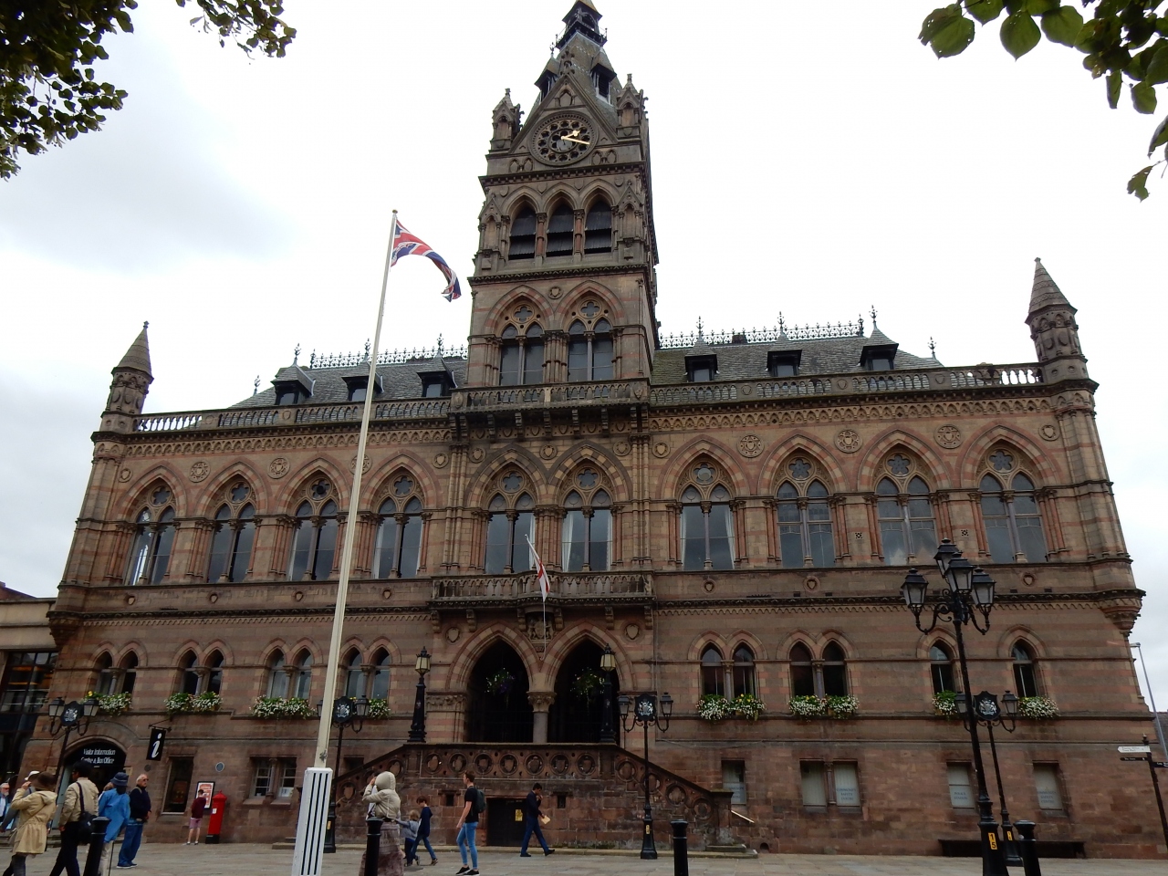 市庁舎と大聖堂とマルクト広場、欧州ではこの3点が一か所にあることが多いですが、このチャスターもそのパターンでした。まるで大陸側のドイツやベルギーなどのどこかの町に来たようです。向かって左隅に案内所兼お土産売店あり。