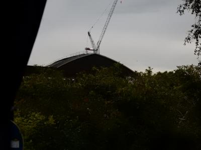 ツアーで訪問。とても広い前面の芝生から外観のみの見学でした。三日月形がよくわかるためにはもっと上か下かに角度をつけて見られたらいいのですが、構図が横長になるし時間もないしで思ったように撮れなかったです。