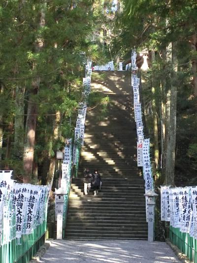 鳥居の大きさにまず圧倒され、まっすぐ続く階段が、神域に入っていくのだという実感を強く感じさせる、とても雰囲気のある神社です。