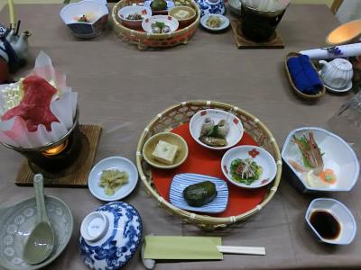 一晩3組までしか予約を受け付けないとのことで、食事も大広間を区切って用意してありました。