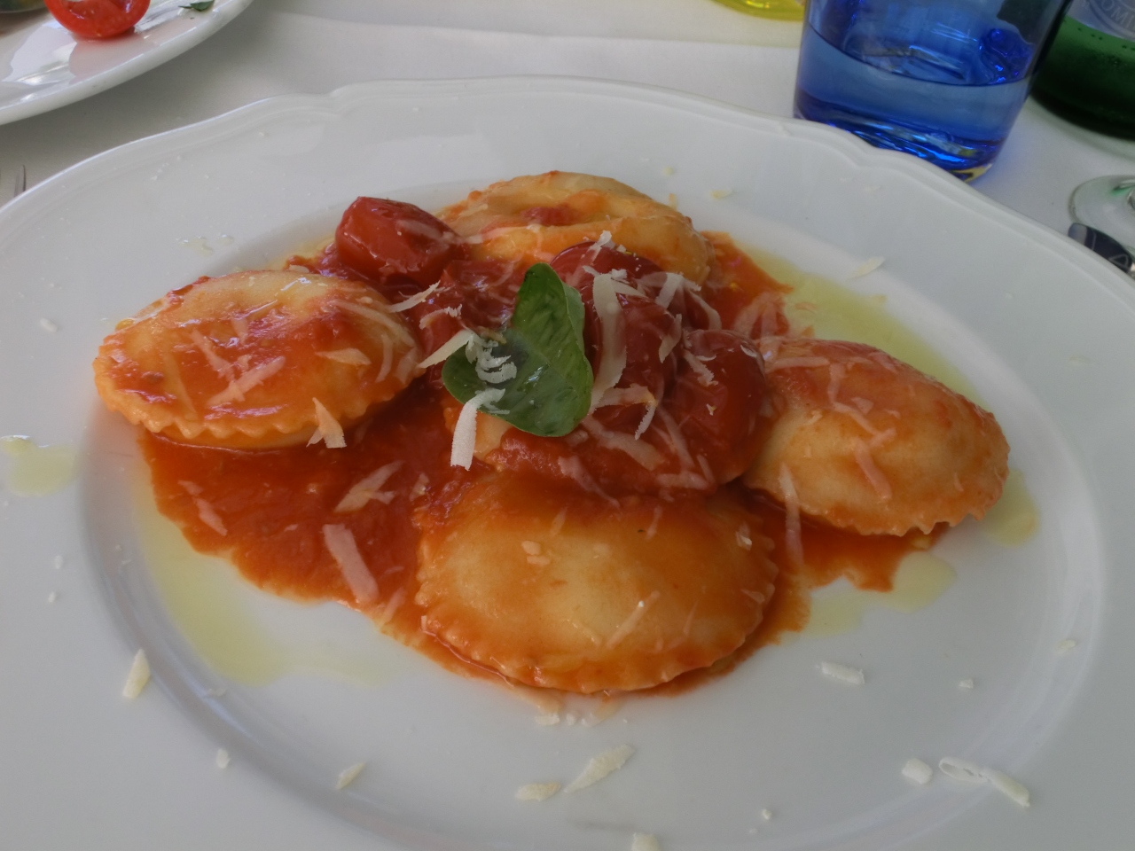 また、ラビオリは中身が多分リコッタチーズで、それにトマトソースがかかっています。