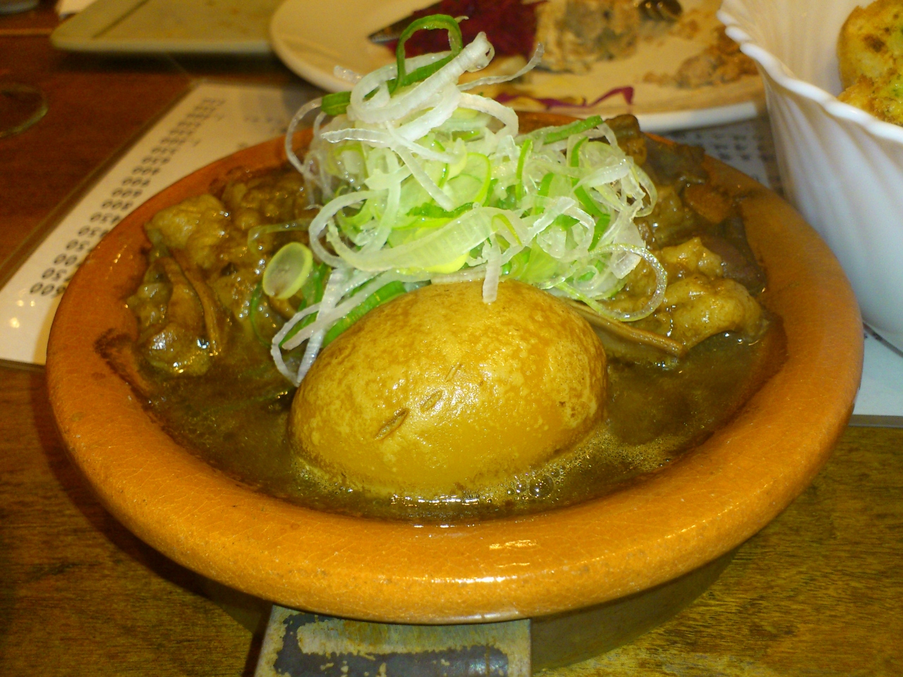 外観も店内もがっつり和風なのですが、もつ煮込みとガーリックトースト、赤ワインがめちゃくちゃ合います。