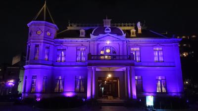 夜通ったのですが、ライトアップが紫でびっくりしました。