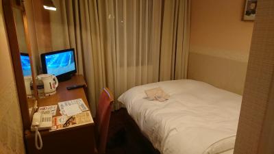 部屋はピンクっぽい壁ですが、装飾過多でもなく普通の狭めのビジネスホテルって感じです。
