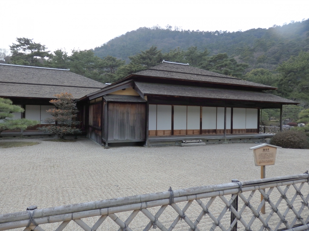 400年ほど前に作られた大名庭園だそうで、庭園内には池や築山、茶室等がいくつもあります。