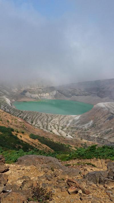 ふもとは晴れていたのにお釜付近は雲がかかっていて、今回もダメ?と思ったのですが、少し待っていたら風が雲を散らしてくれました。