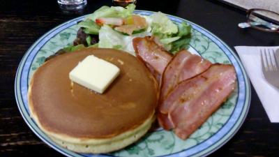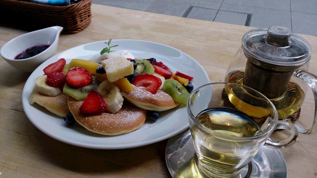 パンケーキがおいしそうだったので頼みましたが、メニューやネットで見かけるパンケーキは有料のフルーツをトッピングした場合の写真なのでご注意を。