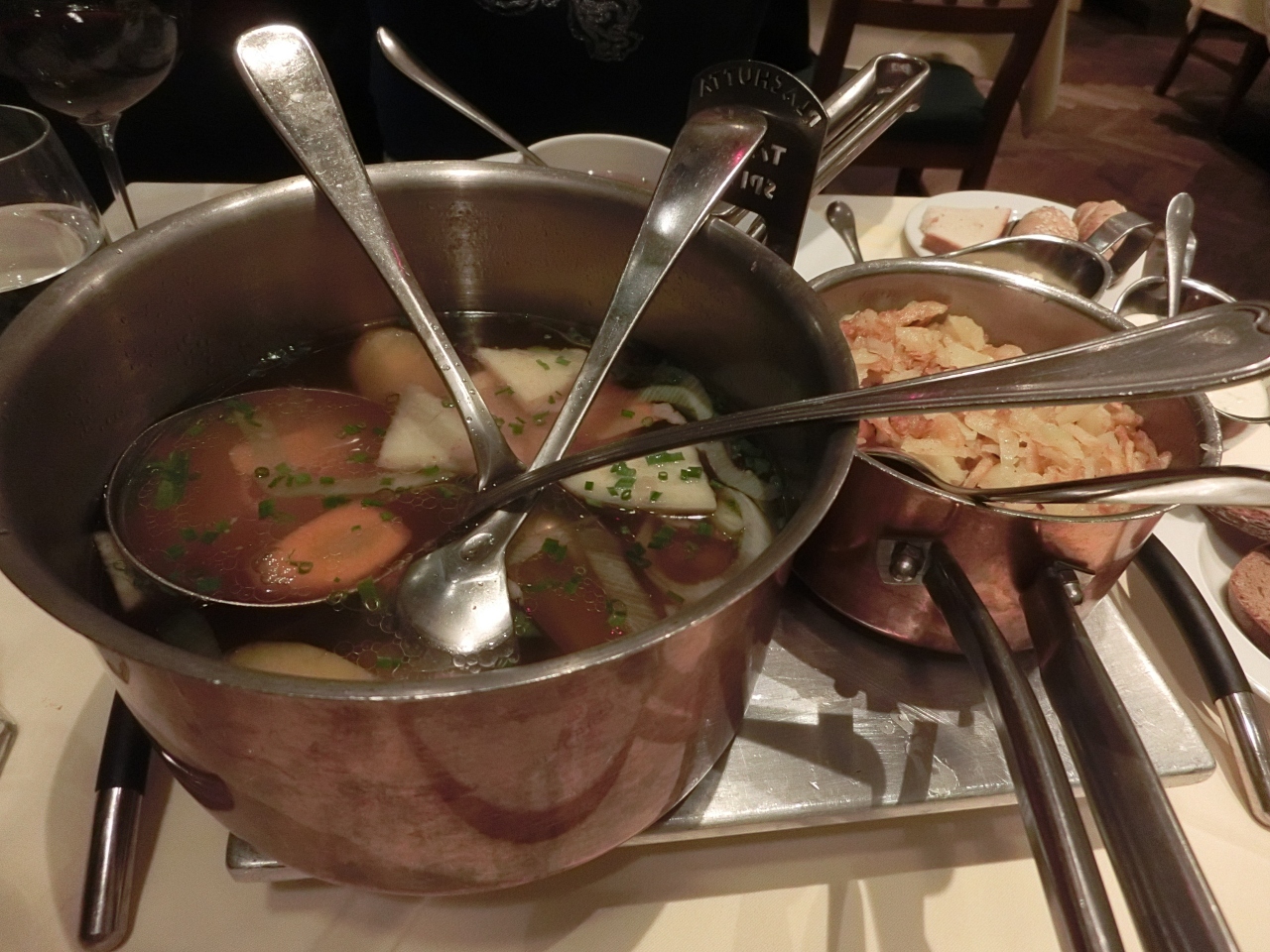 ゆでた牛肉にホースラディッシュ等いろいろなソースと合わせていただきます。