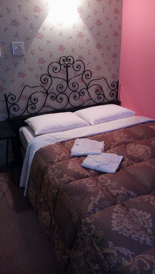 部屋はピンク~紫のかわいらしい色でベッドも女子!!って感じ。