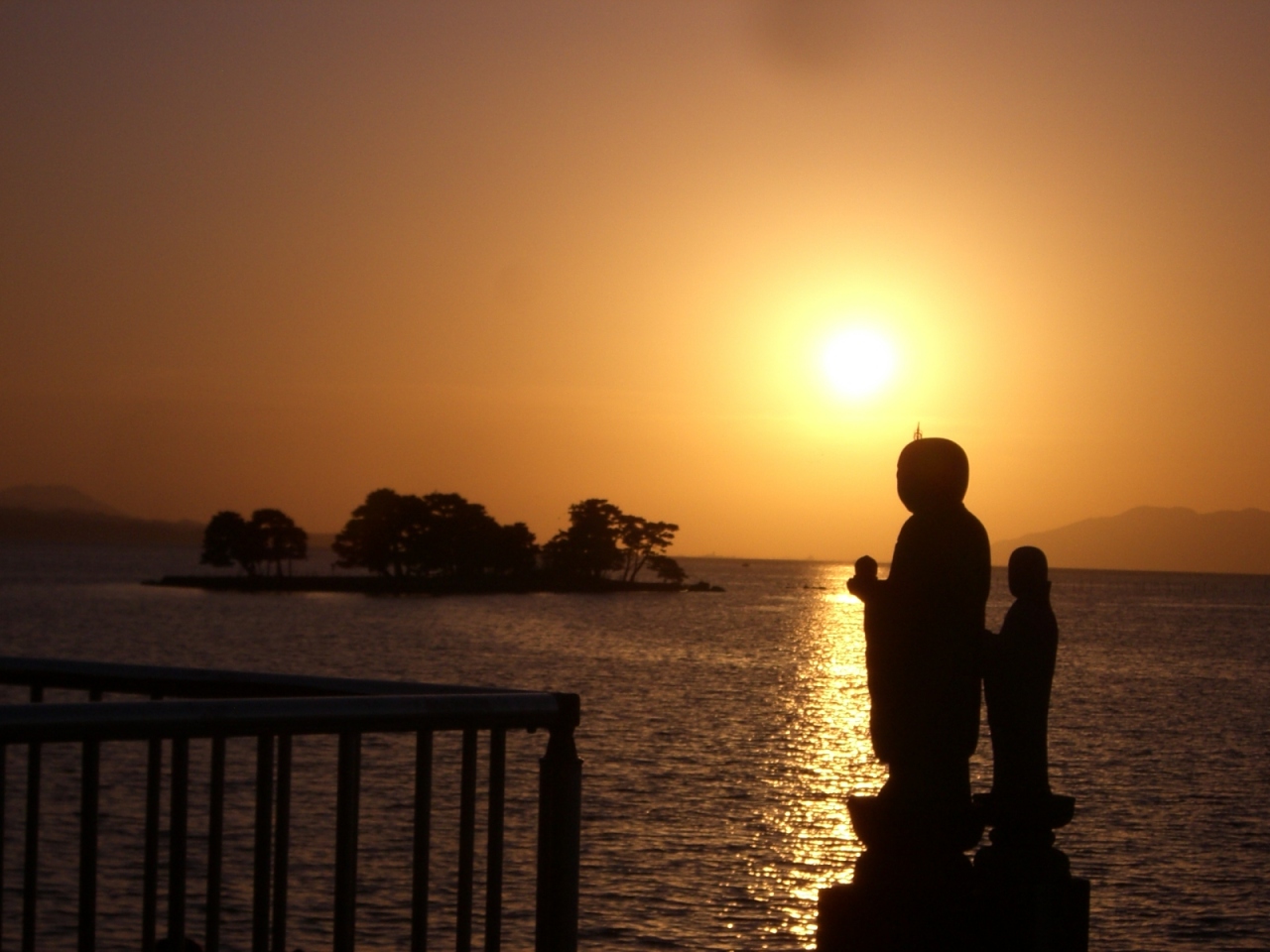出雲大社に行くついでに、松江に泊まったのでちょっと見てみるか・・・と軽い気持ちで宍道湖の夕日を見に行きました。