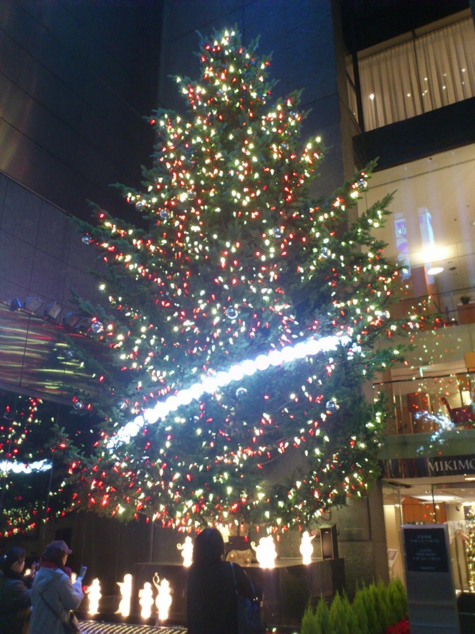 銀座4丁目交差点、和光の隣にあるミキモトの入口には、毎年クリスマスツリーが飾られます。私が知っているだけで20年。その時にすでにもう有名でした。