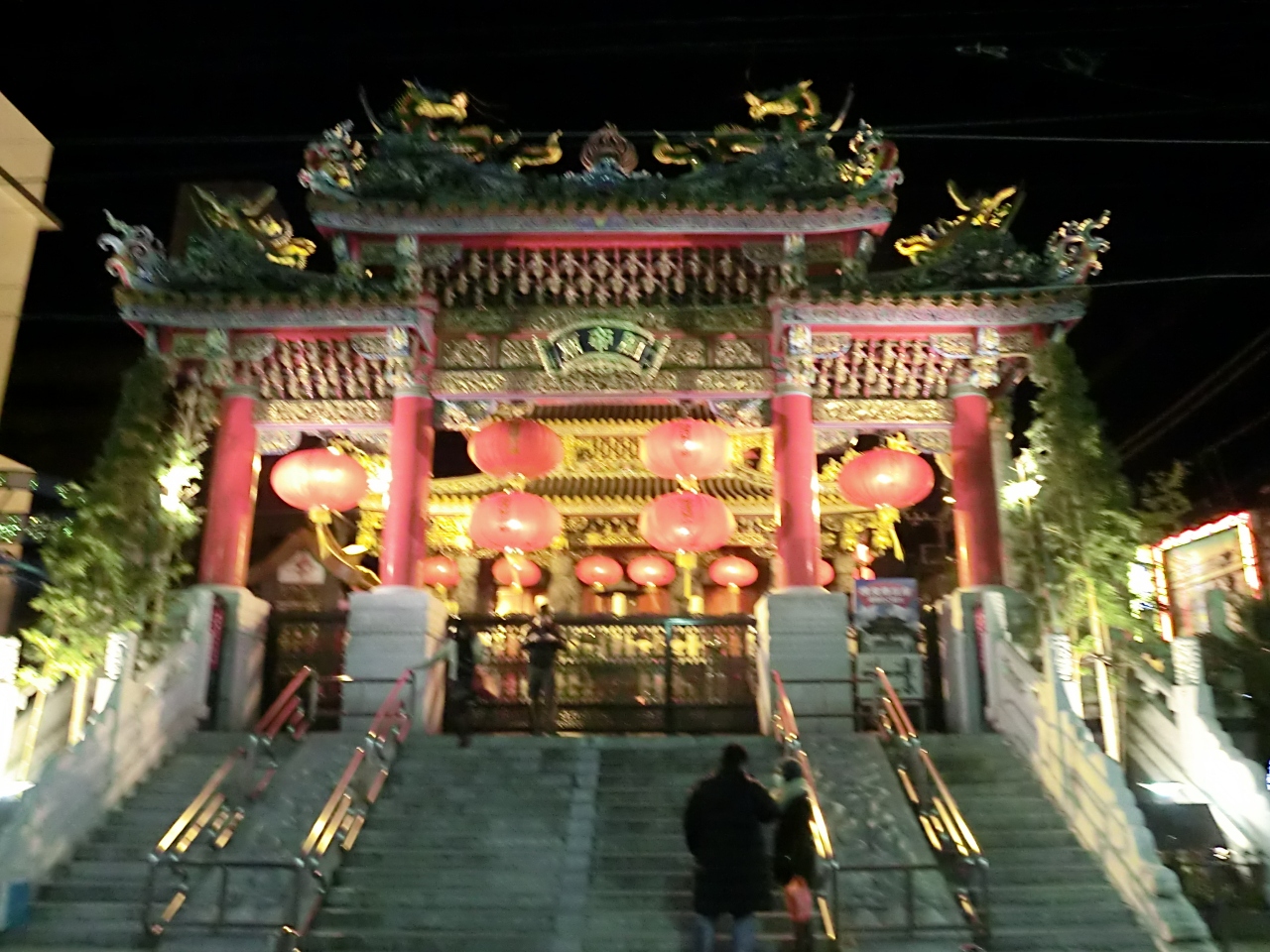 中華街で食事をしてから行ったので、もう入ってお参りすることはできなかったのですが、ライトアップされていて、とてもキレイでした。