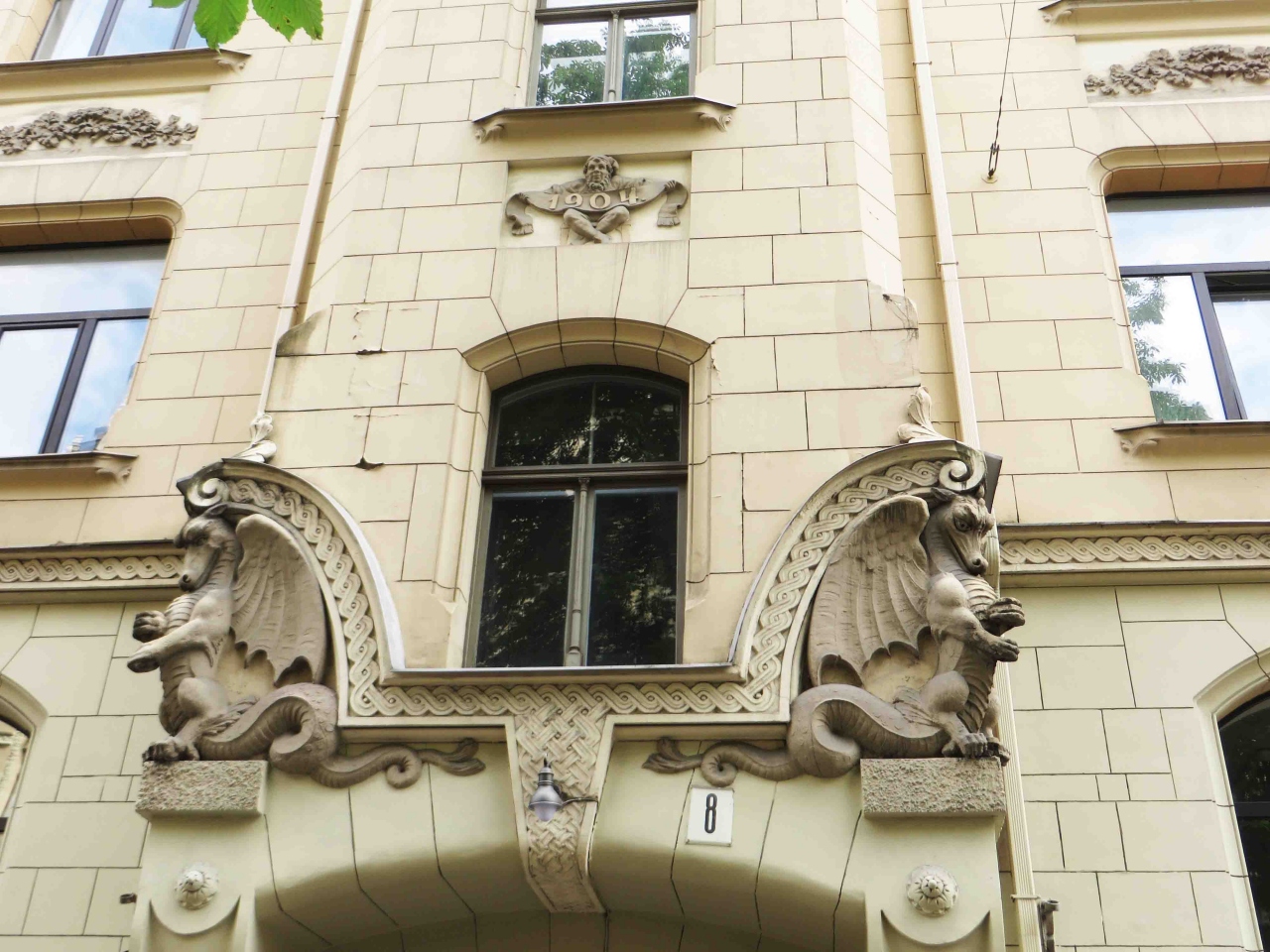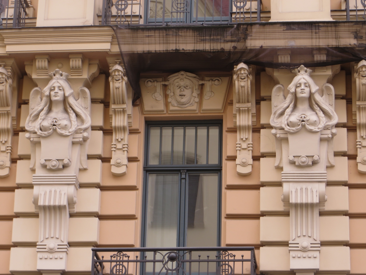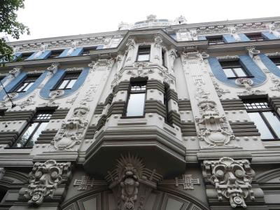 リガの新市街地のアルベルト通りとエリザベス通りには、「ユーゲントシュティール建築群」の旗手ミハエル・エイゼンシュタイン(1867~1921)の独創的な建築を見ることが出来る。