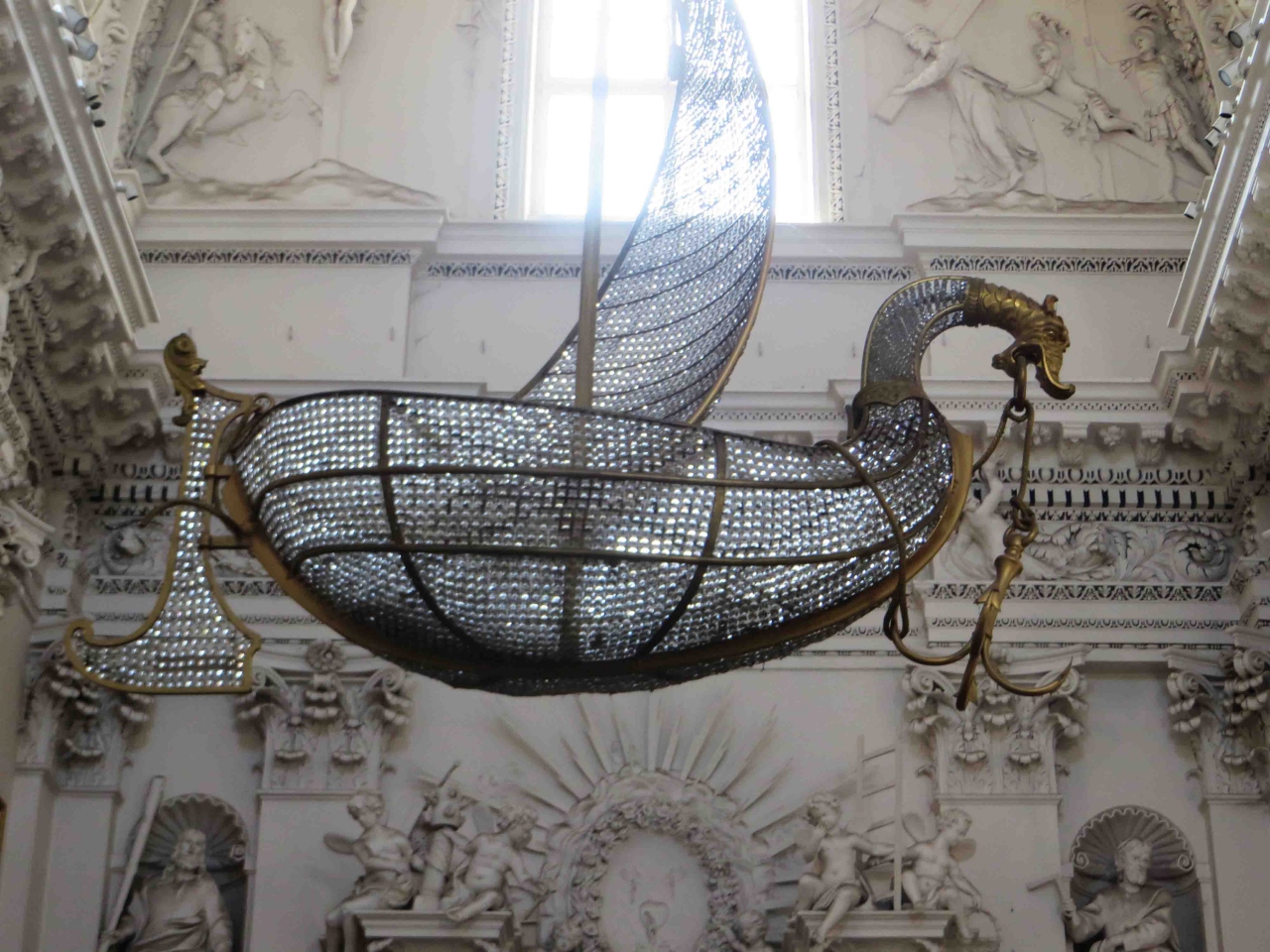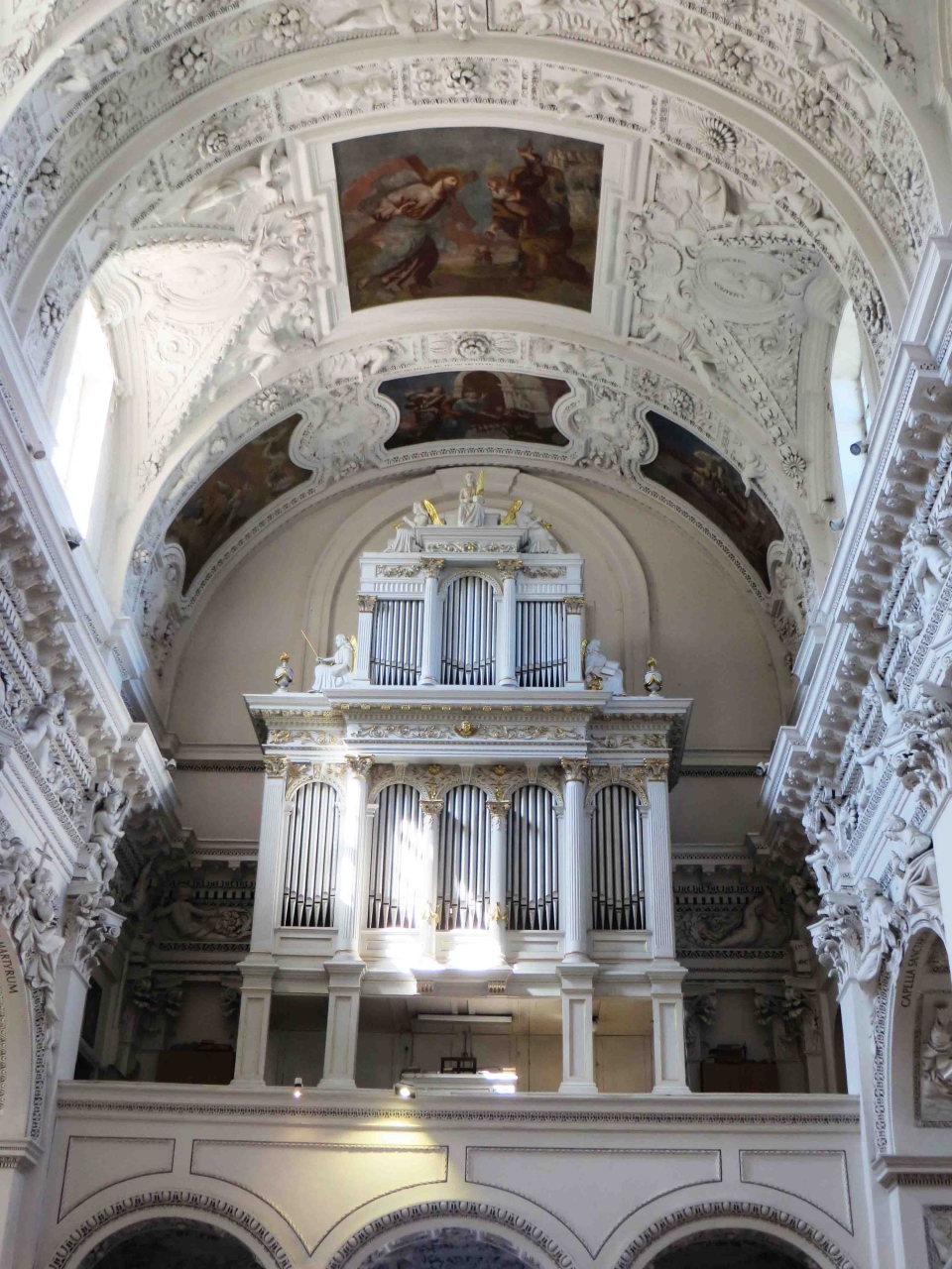 - 教会内の白一色の漆喰彫刻が見事である。2000以上もあると言われている。