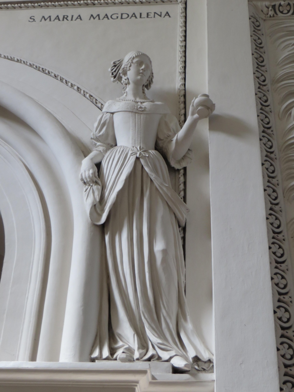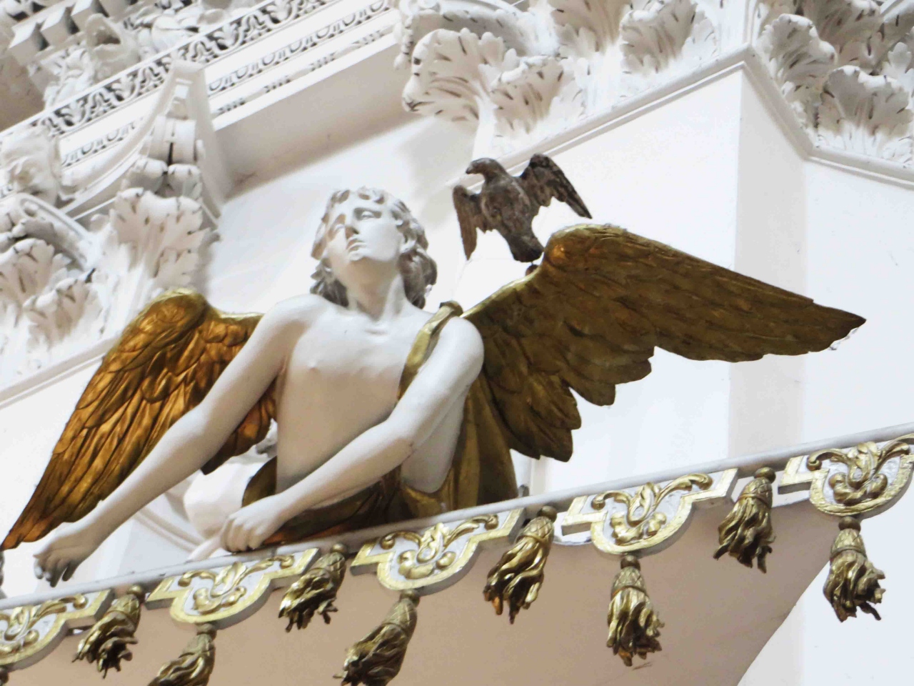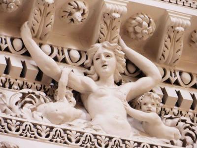教会内には何千もの白漆喰の彫刻が飾られ、人間、動物、植物、聖人、天使等様々なものが描かれていて、同じものはひとつとしてないと言われている。女性像が多いのに気が付く。ひとつひとつ見ていると時間がかかってしまう。- 旅行時期