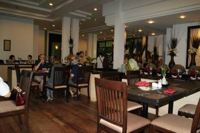 今回の旅行ではTara Angkor Hotelに4泊しました。シエムリアップの中心部からはやや離れていますが、アンコールの遺跡群には近いので、遺跡見学にはちょうど良いホテルです。滞在した部屋は広くて、清潔で申し分ありませんでした。プールもスパもあり、時間があればこのような場所で過ごすのもよいでしょう。朝食用レストランはおかゆから西洋料理まであり、種類は豊富です。ここにはもちろんカンボジア料理もあります。