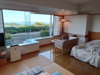 ホテルに行くには船で行きます。あっという間に着きますがそれだけでもアトラクション的に楽しめます。凪の抄の露天風呂ラグジュアリーに宿泊しました。部屋はとても広くて綺麗な部屋でベランダにお風呂が付いています。でもここはやっぱり海のところの大浴場の露天風呂が最高です。感動ものでした。
