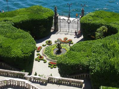 コモ湖トレメッゾにあるカルロッタ邸の3階のベランダからの眺め。レンタカ...
