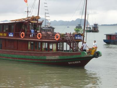 現地shin csfeでオプショナルツアー「ハロン湾ツアー」を頼みました。英語ガイド、昼食付き(クルーズ船上で昼食)、16人乗りマイクロバス使用、ハノイより日帰り観光、四人で11,763円(25ドル)でした。