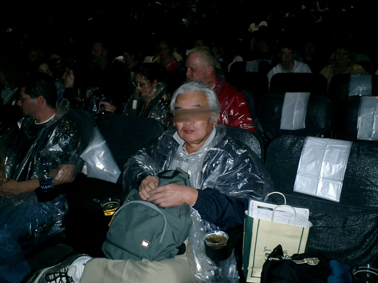 一番前のシートだったのでビニールの合羽(ペンキが万一飛んできた時のため)をつけ観賞した。