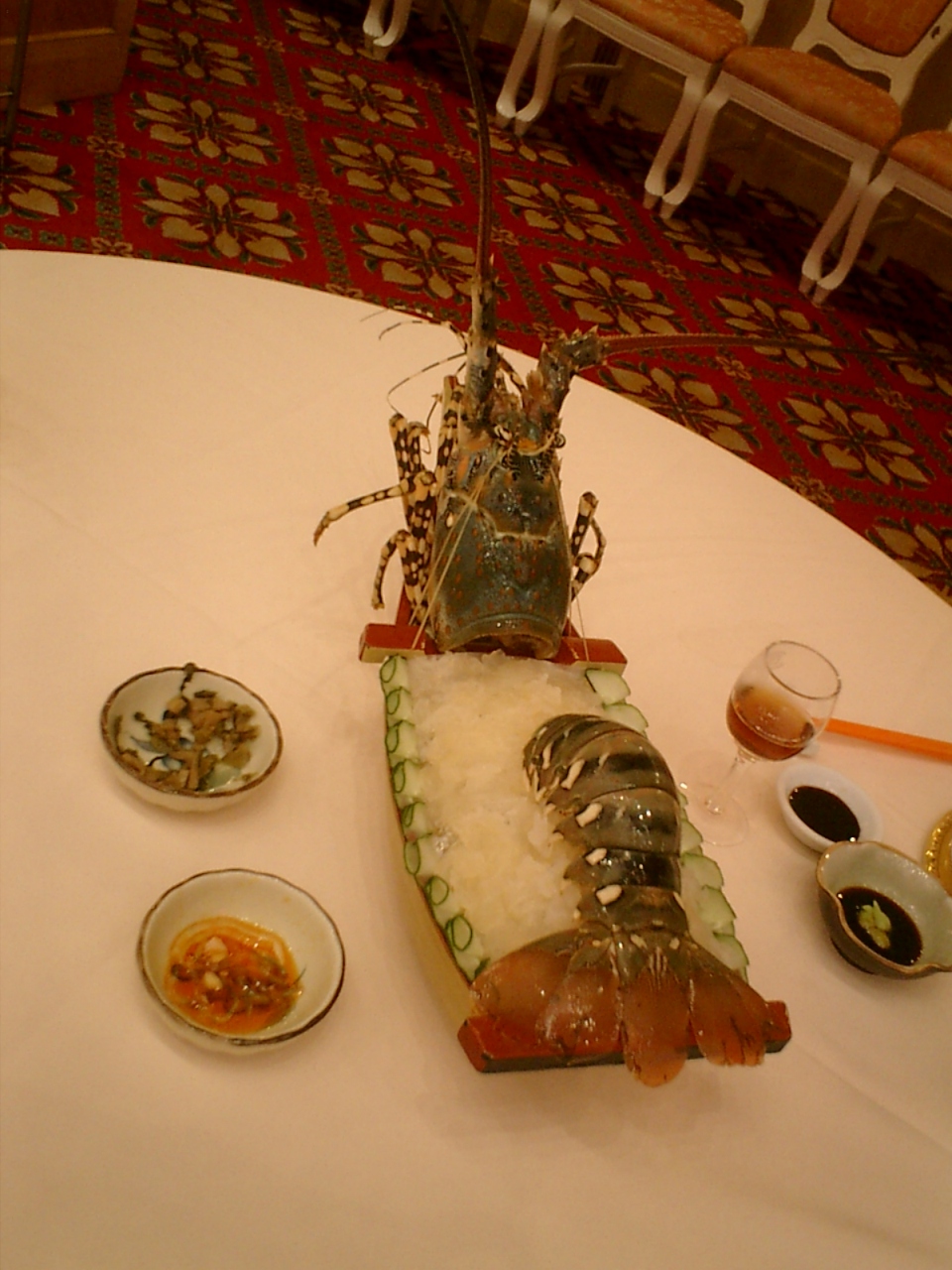 一品料理を注文「しゃこの塩焼」、「春巻き」、広い生簀から伊勢海老を選び「伊勢海老刺身」、あと伊勢海老のガラで雑炊を作ってくれました。(雑炊付とは思っていませんでした)特に雑炊は何とも表現できないほどおいしかったです。料金はビール2缶、紹興酒1本、料理とで合計565元(8,000円弱)でした。二人で十分満足しました。是非お勧めします。- 旅行時期