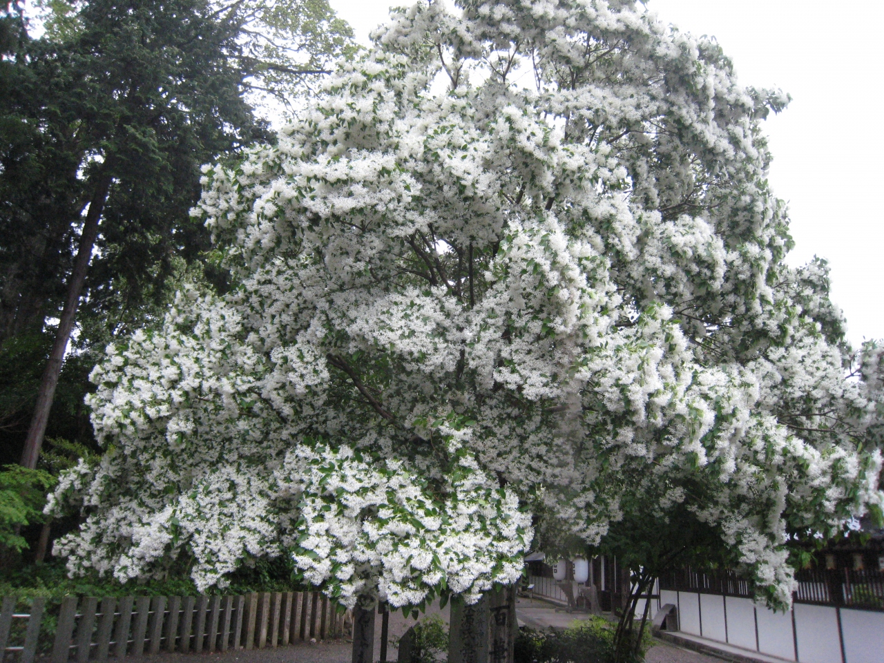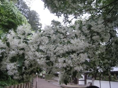 彦根へ行く途中立ち寄った近江八幡安土町の沙沙貴神社で大変珍しい”なんじゃもんじゃ”の木を見つけました。少彦名命を主祭神とし佐佐木源氏の氏神で佐々木姓の発祥の地と言われています。現在も佐佐木源氏の末裔(佐佐木家、六角家、京極家、黒田家、朽木家、三井家等)の篤い信仰を受けています。駐車場へ車を止めると見事な木が1本、白い花を一杯つけていました。普段あまり見かけない木で”なんじゃもんじゃの木”と書かれていました。由緒のある神社で荘厳な雰囲気の立派な神社で偶然になんじゃもんじゃが満開でした。ラッキー!沙沙貴神社を後にし彦根城へ。小雨がパラついていたのでお城の中へ入ると、なんと”ひこにゃん”も雨で外での撮影会を中止してお城の中での撮影会でした。ま可愛い事、仕草が何とも言えず可愛く大ファンになりました。無論縫いぐるみも買いました。今日はなんじゃもんじゃの満開とひこにゃんと二つも珍しいものを見る事が出来ました。