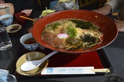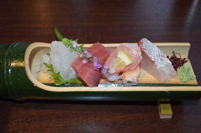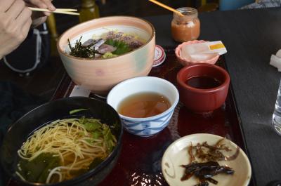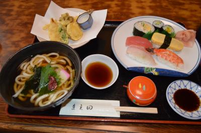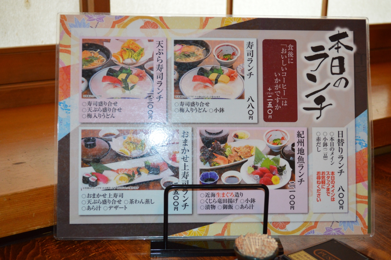 早朝に東大阪を出発、阪和道紀伊田辺で降りて国道311号線で熊野速玉神社へ行きました。参拝が終わるとお昼です。以前から美味しいとの評判の新宮のまえ田へ行きました。駐車場も広く停めやすいです。店内へ入ると明るい元気な声で”いらっしゃいませ”と言って個室へ案内してくれました。お茶が運ばれてきてお昼のランチのメニューから私は天ぷら寿司ランチ、妻は日替わりランチを注文しました。お昼時でほぼ満員状態、15分~20分ほどでお料理がきました。量もお味も文句なし、肝心の料金もランチメニューで安かったです。今度は夜の食事に是非行きたいと思います。