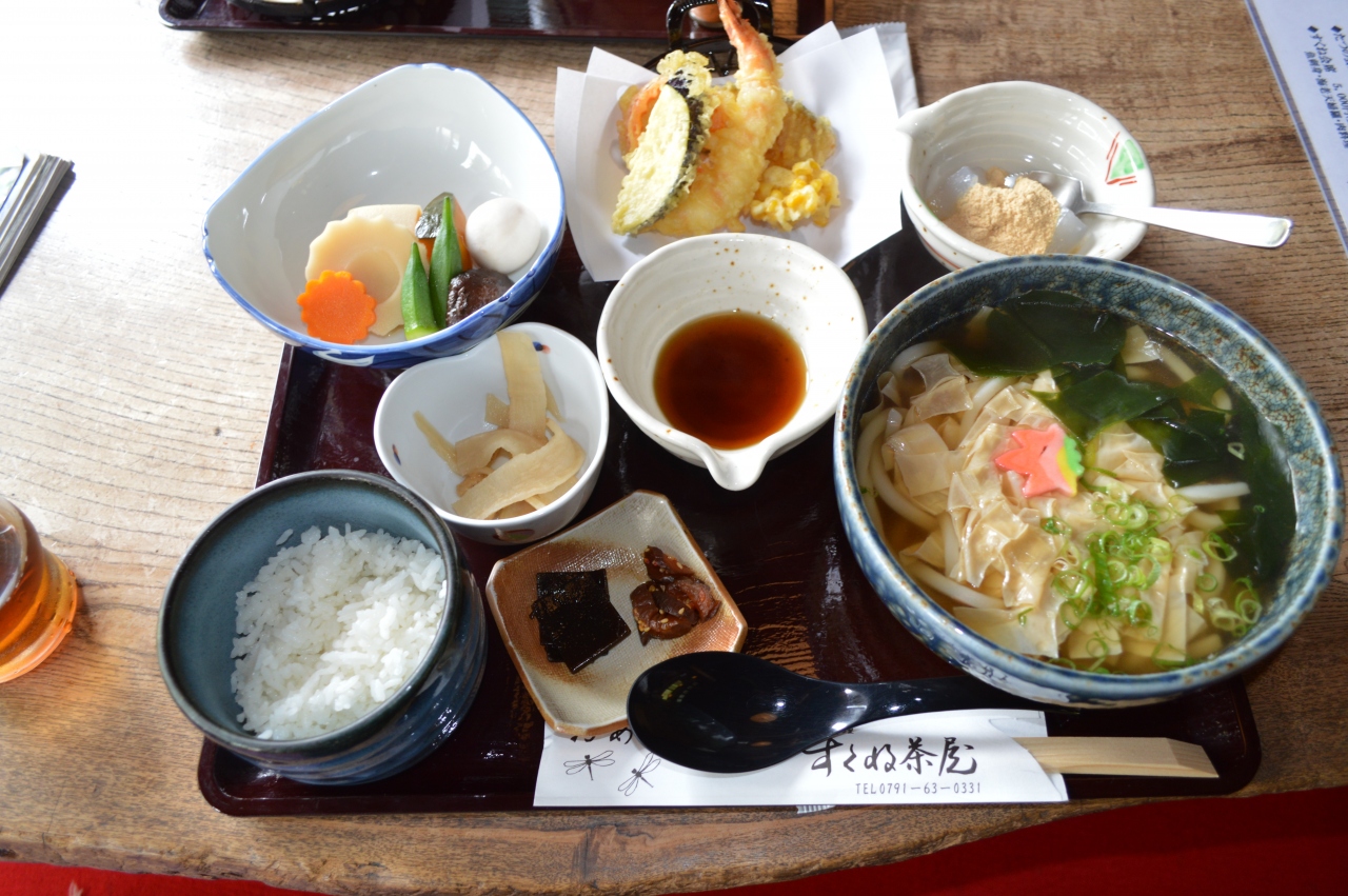 姫路書写山 圓教寺へお参りに行った後昼食に訪問しました。閑静な住宅地にあり駐車場も広く店内も風情がありゆっくりとお食事がいただけました。お昼の日替わり定食と温かい天婦羅付にゅう麺を注文しました。どちらも量もしっかりとありお味もシニア向けで美味しくいただきました。