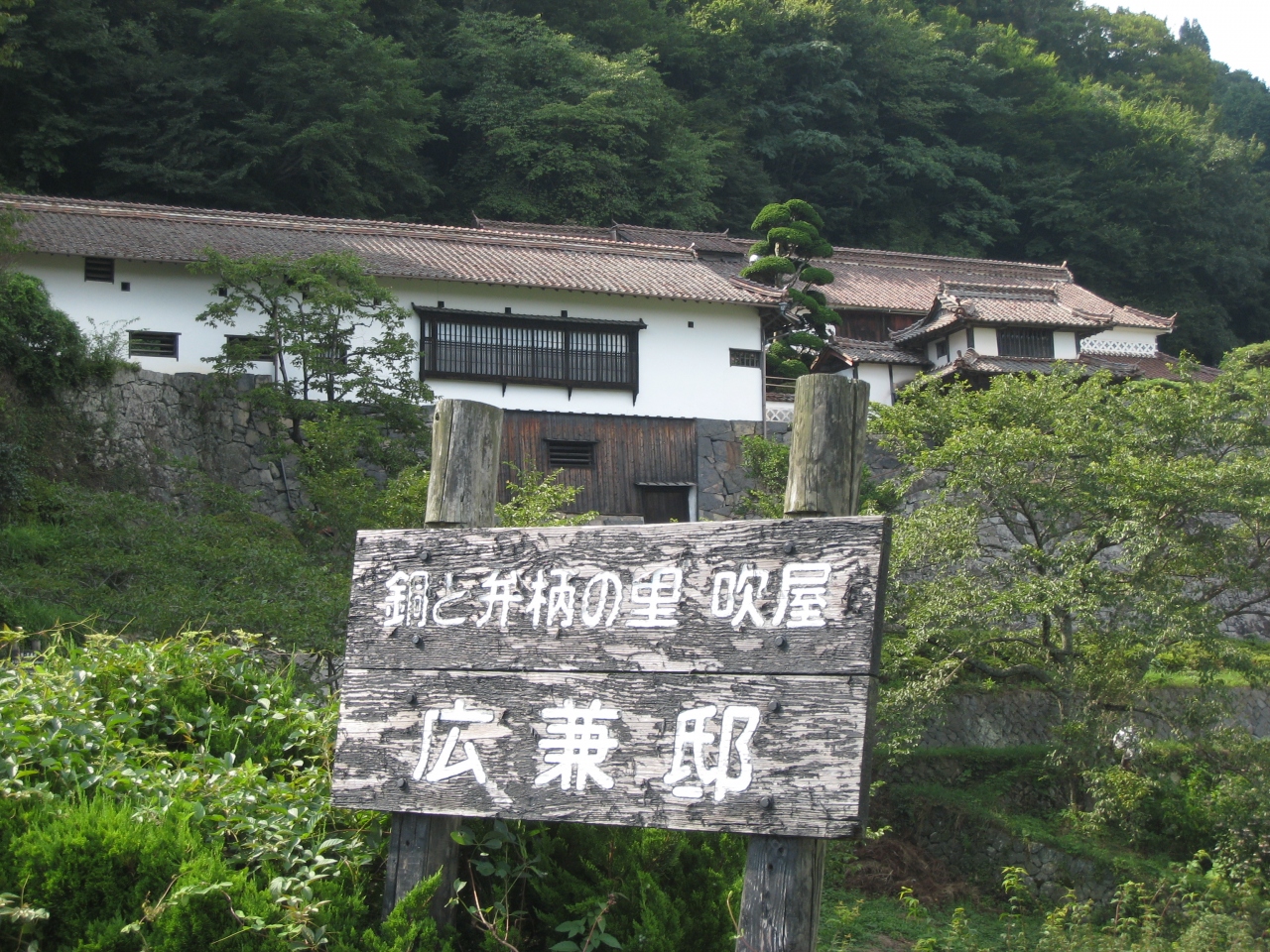 江戸時代後期に小泉銅山とローハ(緑礬・硫酸鉄=ベンガラの原料)製造を営み巨大な財を成した大野呂の庄屋広兼家2代目の元治が建てた巨大な邸宅で1977年の松竹映画『八つ墓村』などの映画のロケ地としても知られていて今も多くの観光客が訪れています。