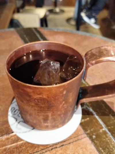 3月にしては暖かい天気でしたが、銅のカップに入ったアイスコーヒーでひんやり。
