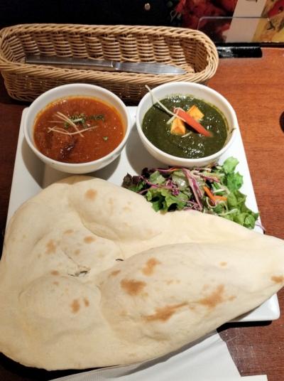 2種類のカレーが選べるセットにして、ラムのカレーとほうれん草とチーズのカレーを選択。どっちもおいしいかったです。