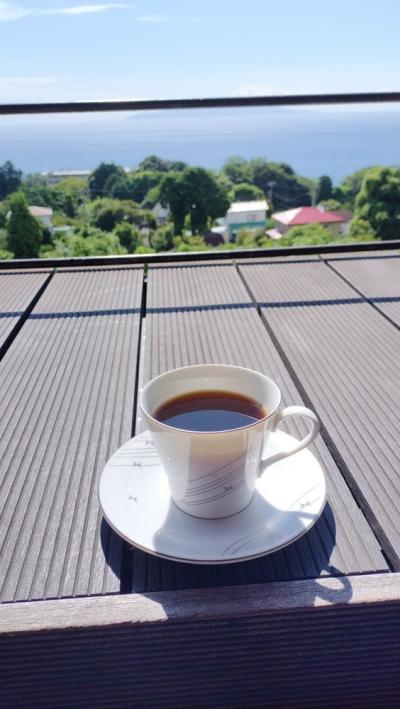 部屋のサイズは大きくはないけれど、外に海の見える露天風呂あり、絶景でした。