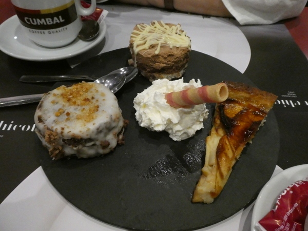 やっと待って頼めたデザートの盛り合わせ、見た目も味もいまいちでしたが、生クリームはさっぱりしていて食べやすかったです。- 旅行時期