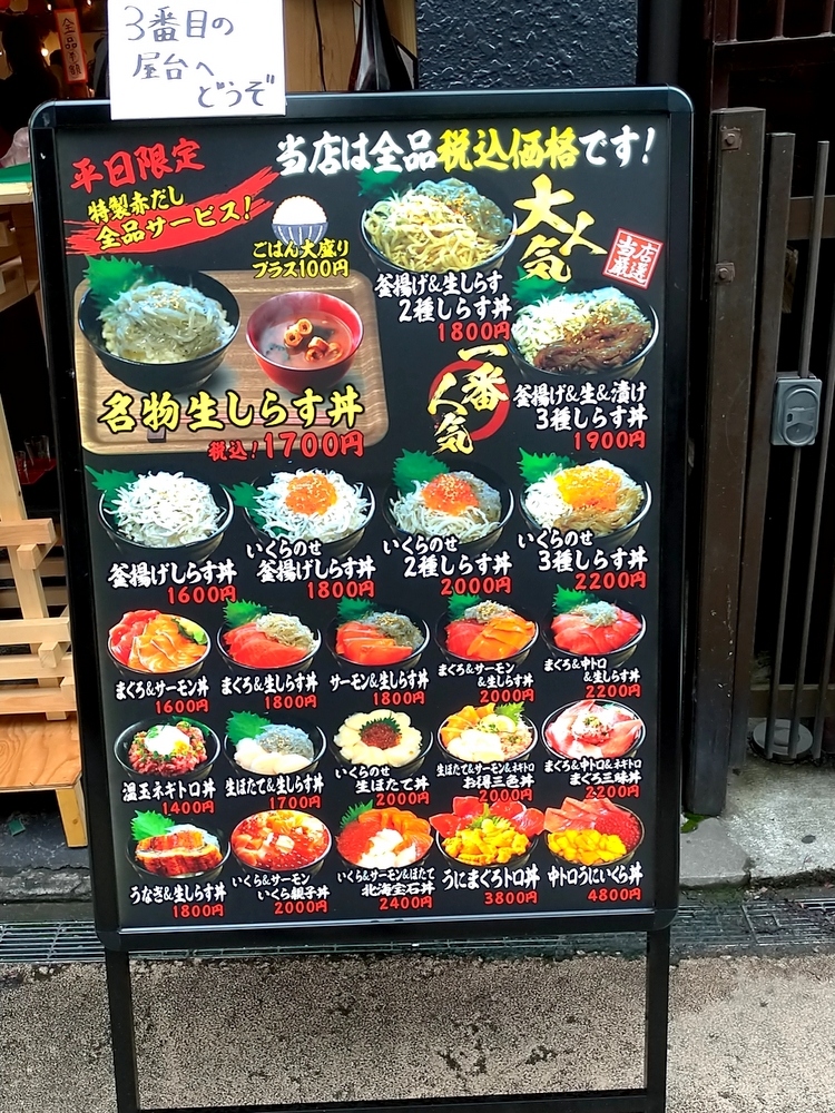 まぐろと生しらすの丼もなかなかおいしかったのですが、ボリュームがちょっと寂しかった感じです。