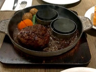 ハンバーグは肉汁たっぷりでとてもおいしかったです。自分で石の上で焼き加減を調整できるのもよかったです。