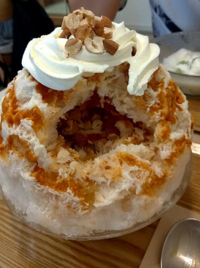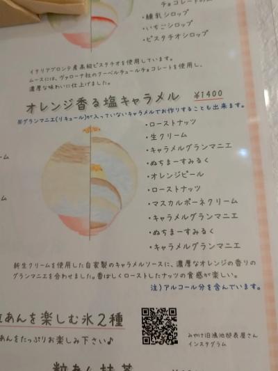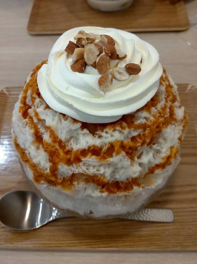 オーダーしたオレンジ香る塩キャラメルは、ほんのりほろ苦いキャラメルとオレンジの香りが効いて、大人なかき氷。