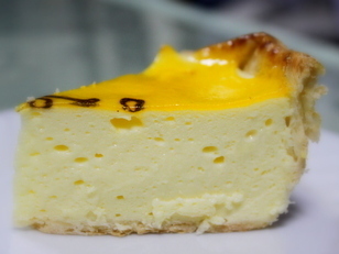 チーズタルトというのでもっと濃厚なのかと思いきや、レアチーズケーキをもう一回りさっぱりさせたヨーグルトムースみたい。
