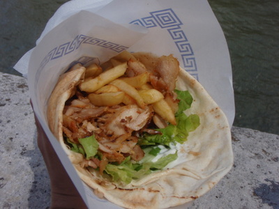 店頭では大きな肉が回っていて、ギロピタは食べやすくて食べ歩きには最適。