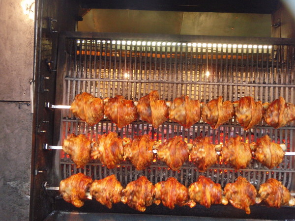 外からも子供の頭くらいはありそうな、大きな豚の塊肉がたくさん並んで焼かれているのが見えて食欲をそそります。