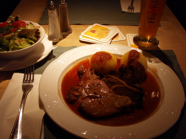 スタッフオススメメニューのサラダとクネーデル、豚のローストをオーダーしましたがすごいボリュームで食べきれませんでした。