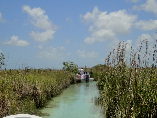 湖のように広いラグーンを抜けて、ボート1台すれ違うのがやっとの細いマングローブの道を進みます。