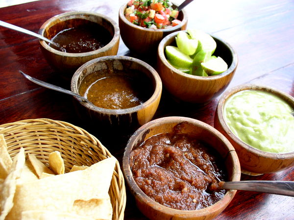 テーブルにサルサが揃っているので、好みのものをかけて食べます。