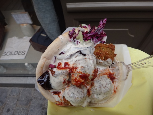ちょっとずつ毎回高くなって2013年2月現在ではファラフェルが5.5ユーロ(テイクアウト)になっていました。
